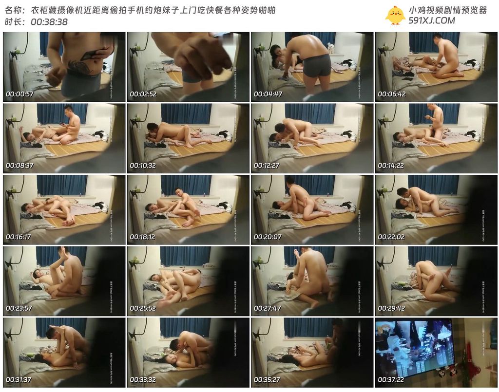 衣柜藏摄像机近距离偷拍手机约炮妹子上门吃快餐各种姿势啪啪